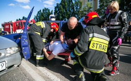 Pieszy i kierowca z telefonem komórkowym przy uchu, chwila nieuwagi i wypadek - tak wyglądał start ogólnopolskiej kampanii „Jestem offline w ruchu drogowym" na Skwerze Kościuszki. Inicjatorem kampanii jest Fundacja Dbam o mój z@sięg.