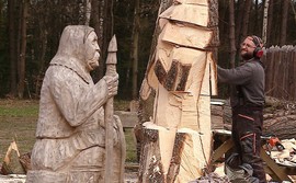 Warkot pił mechanicznych, sterta wiórów i kaszubskie wierzenia – tak w dużym skrócie można opisać trwający w Osadzie Sławutowo plener rzeźbiarski. W wydarzeniu uczestniczy 10 śmiałków z całej Polski, wszyscy zobligowali się w zaledwie kilka dni stworzyć drewniane podobizny pradawnych kaszubskich bożków i duchów.