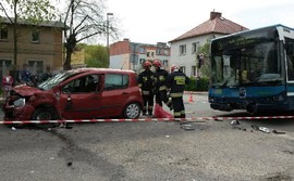 Na ulicy Sobieskiego w Wejherowie doszło do zderzenia samochodu osobowego i autobusu MZK. W wypadku ucierpiały cztery osoby.