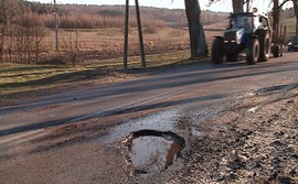 Głęboka dziura w jezdni była przyczyną uszkodzenia auta. W poniedziałek w Sopieszynie jadący samochodem marki BMW mężczyzna wpadł w koleinę.