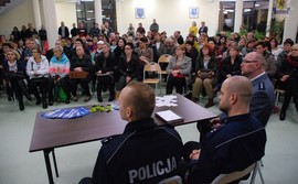 Policjanci z puckiej komendy zorganizowali debatę społeczną z rodzicami uczniów Szkoły Podstawowej w Leśniewie. Tematem spotkania była odpowiedzialność wychowawcza rodziców oraz prawna nieletnich, a także bezpieczeństwo w ruchu drogowym na podstawie programu prewencyjnego "Widoczny pieszy kierowcę cieszy" promującego przede wszystkim korzystanie z elementów odblaskowych
