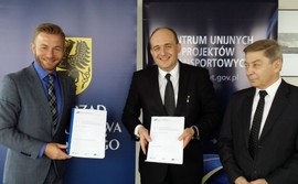 Wicemarszałkowie województwa pomorskiego Ryszard Świlski i Czesław Elzanowski podpisali dzisiaj w Warszawie umowę z Centrum Unijnych Projektów Transportowych o udzieleniu Województwu Pomorskiemu dofinansowania na realizację projektu pn. „Zakup 10 sztuk spalinowych zespołów trakcyjnych do obsługi Pomorskiej Kolei Metropolitalnej w Trójmieście” w ramach Programu Operacyjnego Infrastruktura i Środowisko.