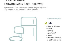 W sobotę 5 kwietnia 2014 r. odbędzie się wystawka odpadów wielkogabarytowych w dzielnicach: Karwiny, Mały Kack, Orłowo....
