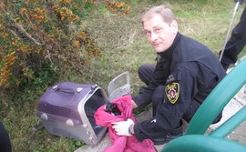 W zbiorniku kanalizacji deszczowej w Gdyni Chyloni topił się mały kotek. Na ratunek zwierzakowi ruszyli funkcjonariusze gdyńskiej straży miejskiej.