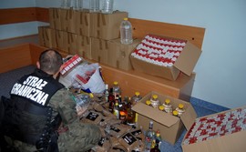 Domową hurtownię wyrobów tytoniowych i alkoholowych bez polskich znaków akcyzy skarbowej zlikwidowała we wtorek w Gdyni Straż Graniczna. Zabezpieczono również gotówkę z handlu nielegalnym towarem. Łączną wartość skonfiskowanych wyrobów i pieniędzy oszacowano na prawie 100 tys. zł....