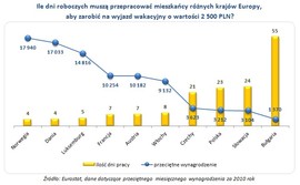 Jesteśmy na wakacyjnym półmetku. Ile muszą pracować mieszkańcy różnych krajów europejskich, aby zarobić na urlopowy wyjazd...