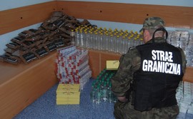 Towar o wartości prawie 50 tys. zł przejęli wczoraj funkcjonariusze Straży Granicznej. W samochodzie mieszkańca Łodzi znaleziono 100 litrów spirytusu, 41 tysięcy papierosów i prawie 30 kg krajanki tytoniowej. Towar nie posiadał polskich znaków skarbowych akcyzy.