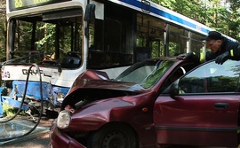 Dzisiaj po godz. 12.00 doszło do poważnego wypadku w Łężycach. Samochód osobowy na zakręcie uderzył w autobus linii 88. Dwie osoby zostały ranne.